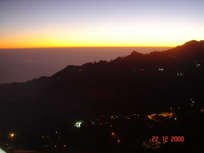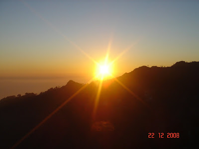 Hi, just 2 days back we returned back home after enjoying our winter holidays at Mussorie. It was truly an unforgettable experience. We stay at Noida and Mussorie is at a distance of about 270 Kms. We started from our home early in the morning around 9 am ( For us 9am is early in the morning lolz :)) ) in our good old Wagon R , my husband was driving and me and my son were enjoying the travel by having chips, soft drinks and as usual some great fights and arguments, lol. Should have seen my son…. occupied the whole back seat with pillows and soft blankets on either side with his laptop and psp by the side and listening to songs from the laptop with his head phones on, in short he was sitting like a maharaja in the backseat . The roads were terrible and these kind of roads am seeing for the first time in my life and can you imagine it took us 10 whole hours to reach our destination!!! YES we made 270 Kms in 10 hrs hmmmn that must be a world record I guess. But once we reached the foot hills the roads became ok and the beautiful scenes of the forests are still fresh in my eyes. Mussorie is about 6000 ft above sea level and really a perfect holiday destination. We reached Mussorie after a long tiring journey of 10 hours and finally reached our hotel…. The Avalon Resorts, where we had already booked our room 2 weeks back. And lolz they had given us a cottage which was at the highest location among all the other cottages thinking that we'll enjoy the beautiful view from our cottage. Yes, it is absolutely true the view outside our cottage was the best and there was a huge window besides our bed and whenever we looked at the window it was like a beautiful digital photo frame changing its picture every 1 hour. Especially the sunset and the sunrise were very beautiful. There are hardly any words to describe its beauty. From our cottage we could also see the snowy peaks of Himalayas in the right hand side and at the same time on the left hand side of our cottage we could see the beautiful twinkling lights of the city of Dehradoon. We felt like that we were in heaven WOW!!! While am writing this post I feel like I am still there in Mussorie. Unlike other hill stations I visited in India, Mussorie has a very active night life. The mall road in Mussorie has some very good shops for buying woollens and handicrafts. We visited Kempty falls, a waterfall about 15 kms from Mussorie, which was very beautiful and we saw people taking bath in that waterfall don't know how they coped with cold icy water!!! The weather though was not very cold. Sometimes in the afternoon I had to take my sweaters off as it was fairly warm. The best part of the whole trip was climbing up to our cottage and then climbing down lolz that was the tiring part of the whole journey. We had to climb about 60 steep steps and from there have to walk about 200 feet that too very steep path to reach our cottage. But it was worth the hard work and it was also a great exercise. Cause if we had got a cottage at the bottom of the resort we could not have enjoyed the beautiful sceneries that we enjoyed from our cottage. At last the day came we had to leave Mussorie and all the three of us did not want to leave that beautiful place filled with fresh air, green forests and a very peaceful slow, steady life unlike cities.... hmmmn but that is not possible practically and with a heavy heart we bid adieu to Mussorie and came back home sweet home. Above are some beautiful photographs we took in Mussorie and hope you enjoyed the post and plz leave your observations and thoughts in the form of comments. I would love to hear from you and if you want any information feel free to contact me through email. Last but not the least the above pictures were taken by my son, Arjun and are copyrighted :) Bye bye.